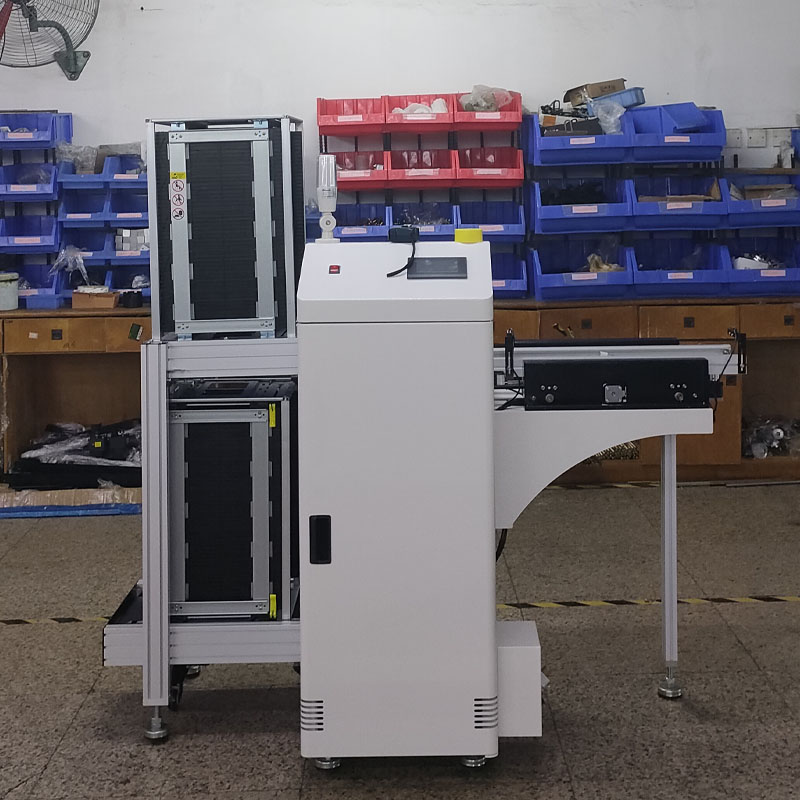新闻中心 / 公司新闻 / 2025-09-17 11:08:28SMT自动收板机是电子制造中用于高效收集柔性电路板(FPC)或刚性电路板(PCB)的自动化设备,通过机械臂、传送带及智能控制系统实现精准堆叠,显著提升生产线效率并减少人工干预