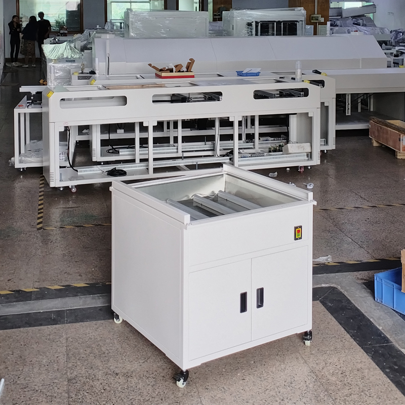 用于半导体封装、测试、洁洗生产线未端,BGA板通过料框(弹夹)储存方式存起来,具有自动送板功能。